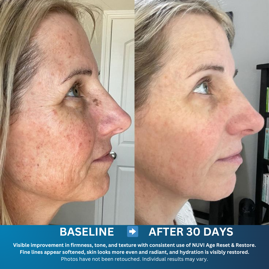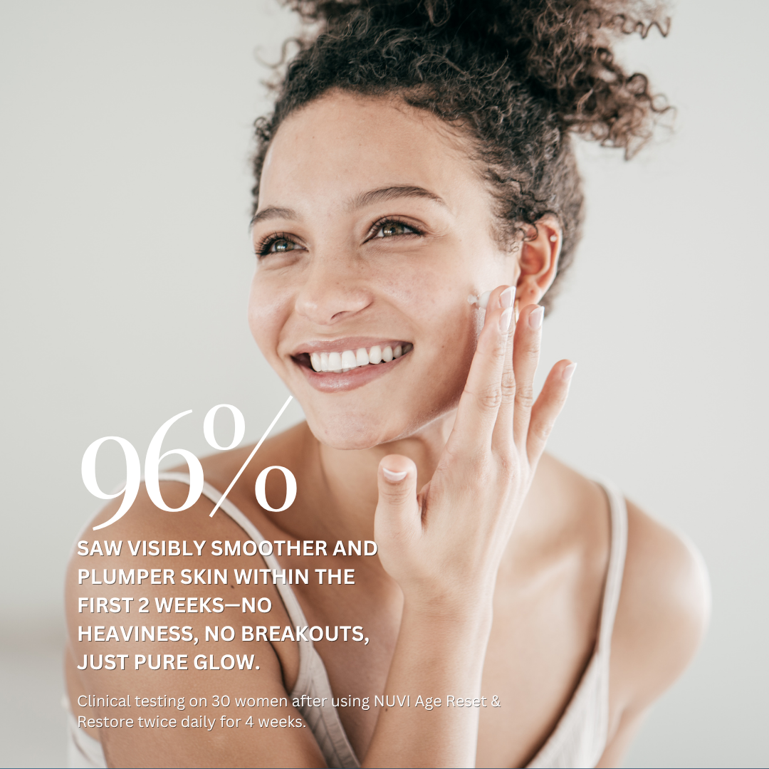 Start your day with a silky-smooth cream that hydrates, firms, and shields your skin from sun and stress—without stickiness, white cast, or irritation. That’s exactly what NUVI Age Reset & Restore was made for. Ready to glow differently?