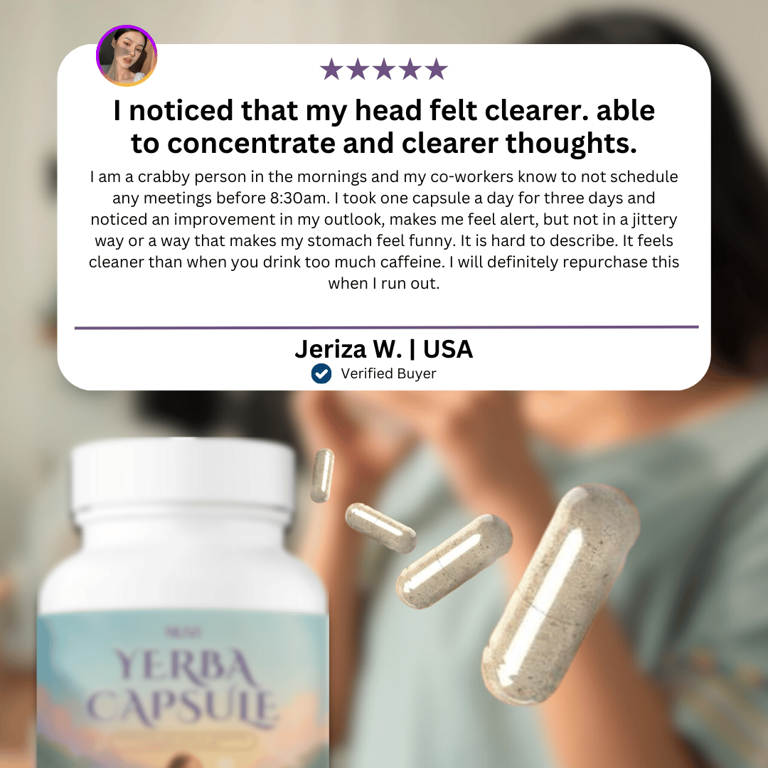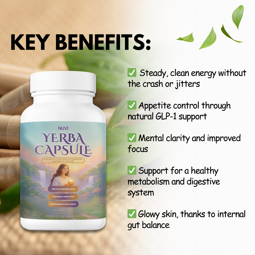 You’re busy. Life moves fast. Yerba Capsule helps you move and think faster— with clean energy, better focus, appetite control, and benefits for skin and digestion. It’s the everyday capsule for that "put-together" feeling.